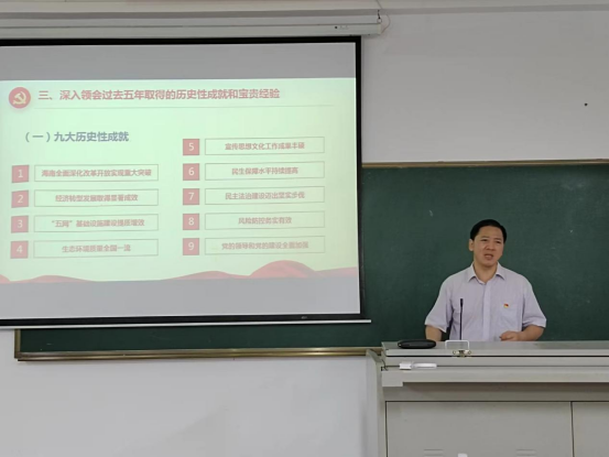 涂刚鹏教授以“朝着建设具有世界影响力的中国特色自由贸易港勇毅前行——学习贯彻习近平总书记考察海南重要讲话精神和省第八次党代会精神”为题展开授课。