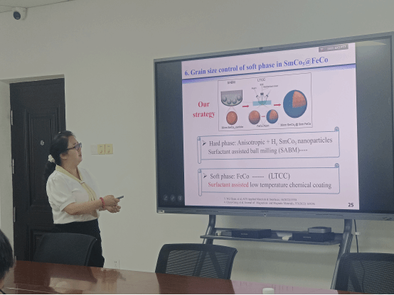 在论坛报告中,杜娟教授聚焦纳米晶稀土永磁材料,围绕软、硬磁相纳米颗粒的尺寸控制、硬磁相纳米晶粒的取向排列以及软硬磁相晶粒的均匀分布等关键技术难题,分享了纳米晶磁体微观组织精准调控、制备高性能纳米晶磁体方面的研究进展。安亮副教授从当前能源问题出发,分析了燃料电池作为解决方案的潜力和所面临的挑战,阐述了燃料电池结构、工作原理以及燃料和反应器的优势,指出了燃料电池在材料、传输和成本等方面存在的问题,通过降低燃料电池在材料反应、传递过程和物质传输中的损失,分享了高性能混合燃料电池的研究经验。李运勇教授聚焦高导电柔性载体的设计和电极材料的致密组装,报告了高容量纳米活性材料的紧密集成,以及高致密合金型负极和硫正极方面的研究成果。