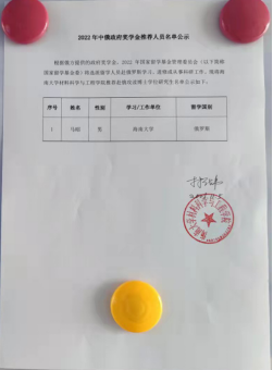 根据俄方提供的政府奖学金,2022年国家留学基金管理委员会(以下简称国家留学基金委)将选派留学人员赴俄罗斯学习、进修或从事科研工作。现将伟德国际victor1946推荐赴俄攻读博士学位研究生名单公示如下: