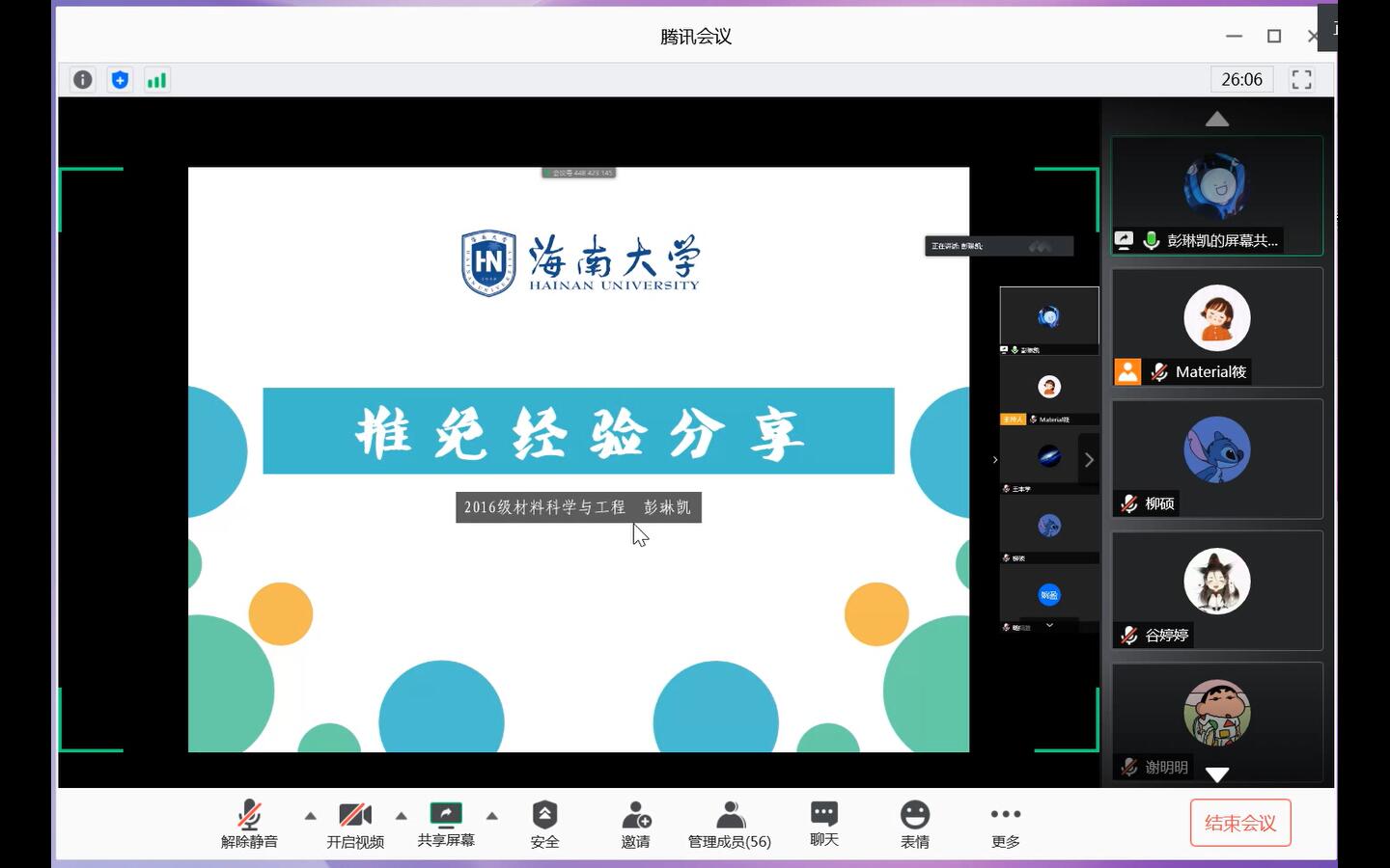 本次考研经验分享交流会邀请了成功保研到清华大学、浙江大学;考研到中国科学技术大学、兰州大学、苏州大学、伟德国际victor1946的6位2016级员工担任主讲嘉宾。他们结合自身经验,为低年级员工分享备考计划,解答疑惑。虽然受疫情影响无法进行面对面的沟通交流,但员工们积极提问、汲取经验的热情并未受到丝毫影响。