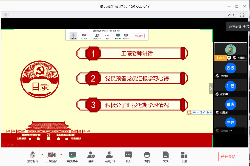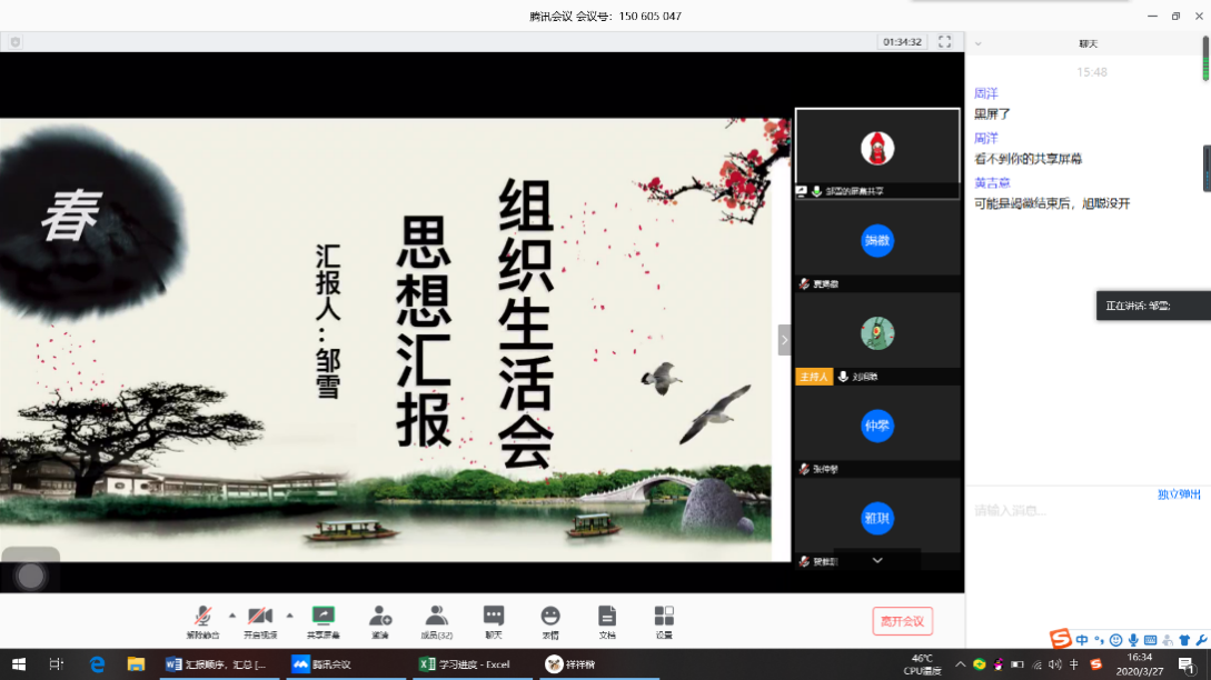 2020年3月27日下午,伟德国际victor1946材料系本科党支部开利用腾讯会议平台开展了3月份组织生活会,支部党员共35人,出席28人,另积极分子参会5人。