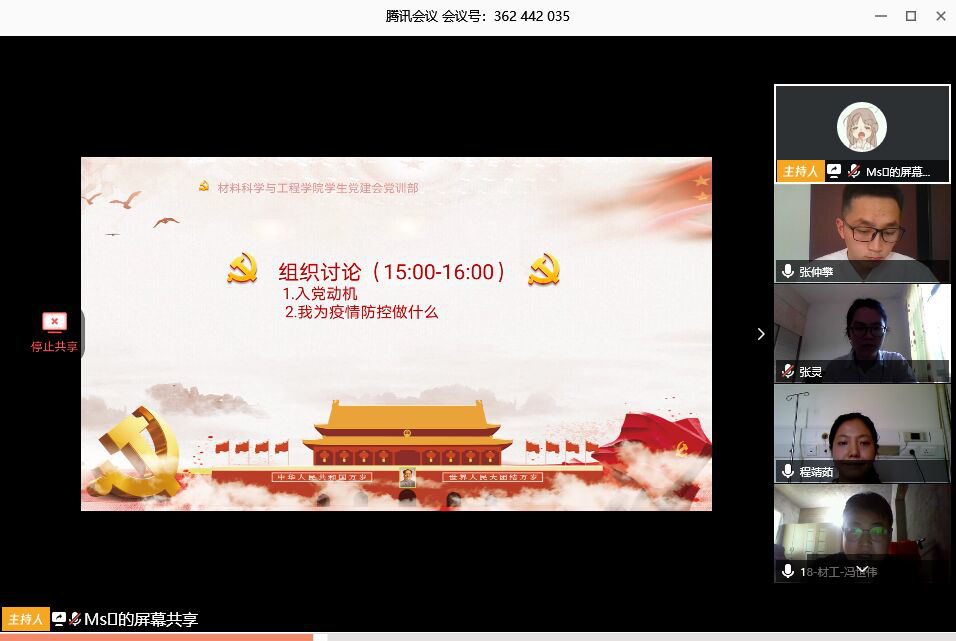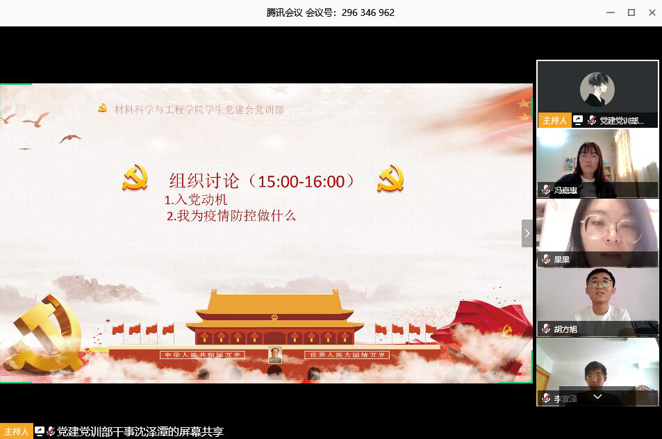 2020年5月5日,伟德国际victor1946分党校2020年春季发展对象培训班线上组织讨论活动采用视频会议的形式成功召开。